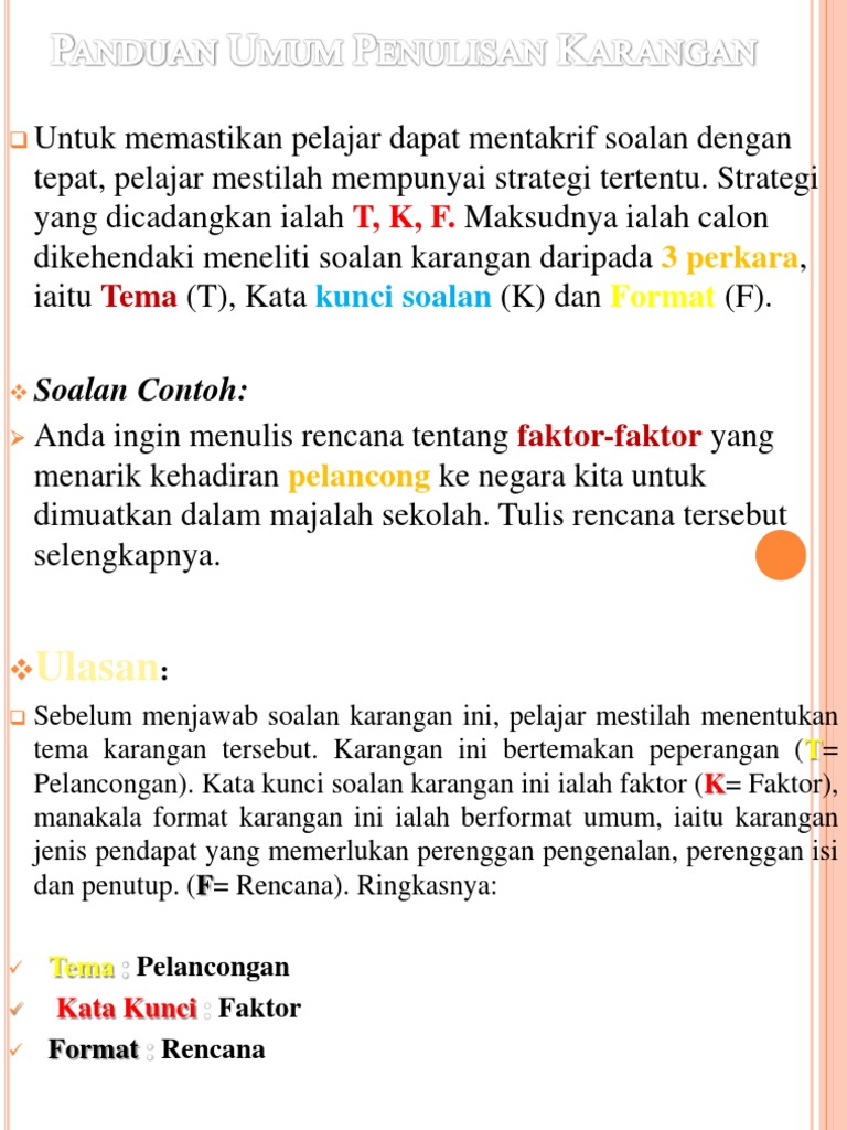 Aktiviti ini berpusatkan murid dan bertujuan untuk menyokong dan mengukuhkan pelaksanaan. Panduan Menulis Karangan SPM Kertas 1 Bahagian A. Semoga perkongsian bahan-bahan rujukan panduan bahan pembelajaran dan pengajaran contoh-contoh karangan sumber rujukan PT3 Pentaksiran Tingkatan 3 tingkatan 1 tingkatan 2 tingkatan 3 dalam post di blog Bumi Gemilang berguna.